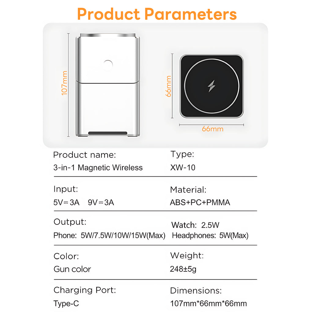 Includes Accessories:3-in-1 Wireless Charging Stand*1、Data Cable*1、User Manual*1