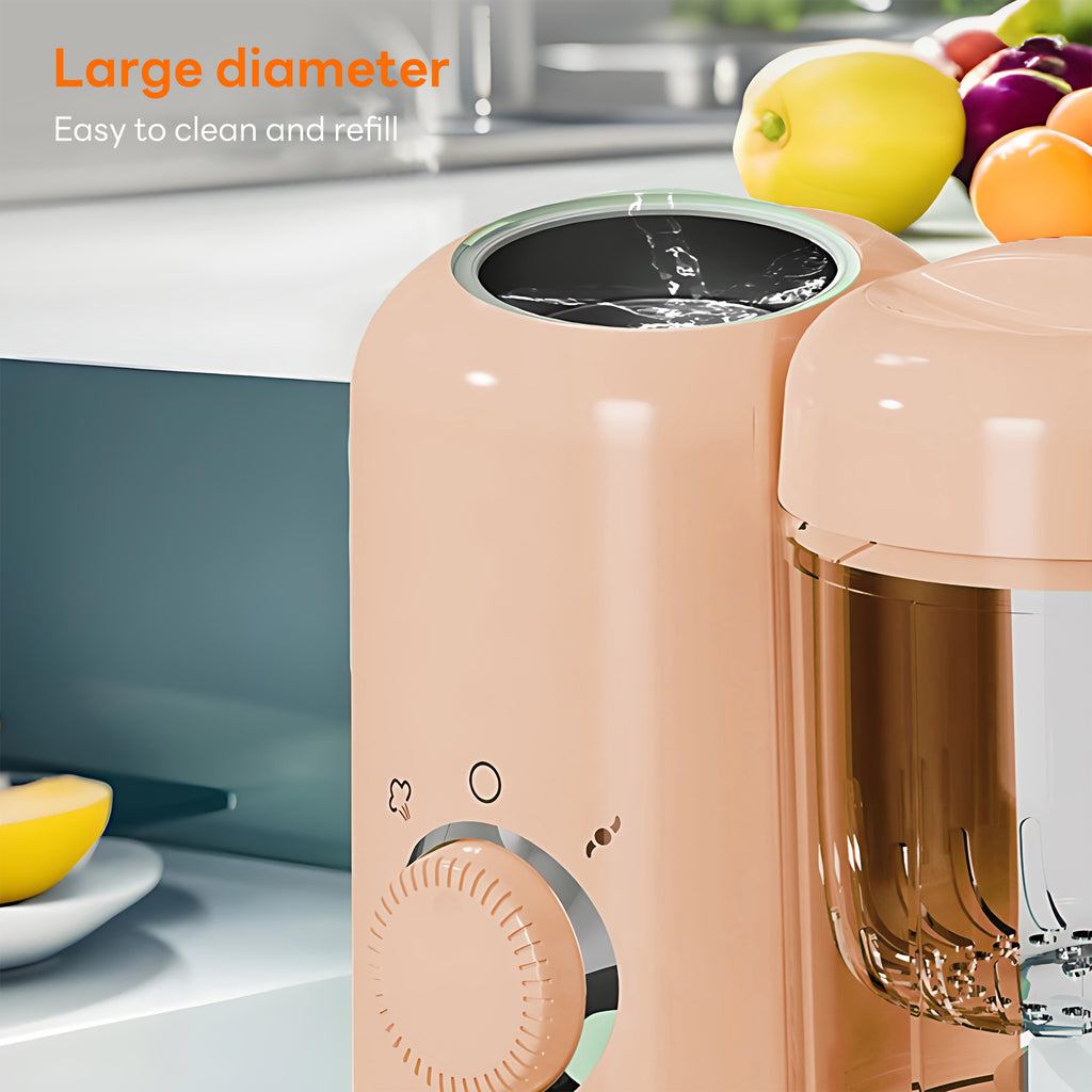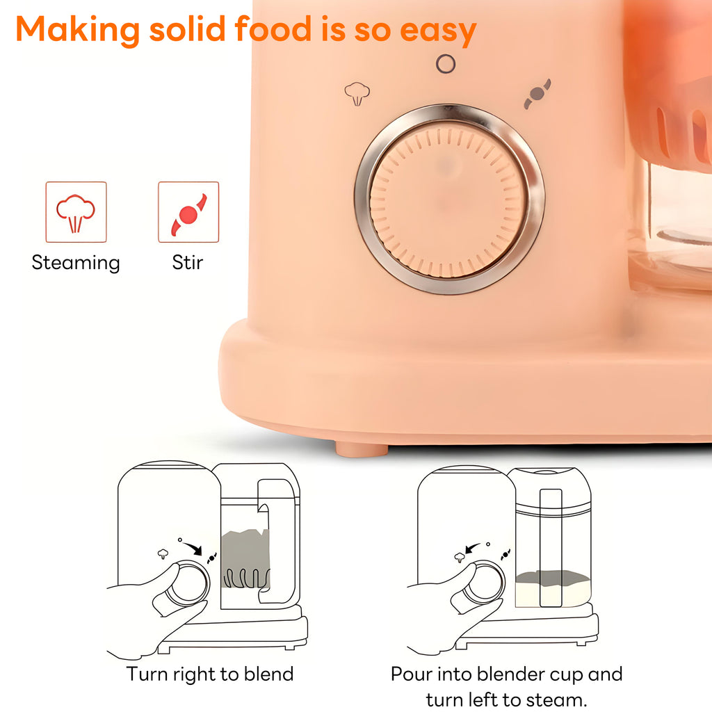 - 【Easy To Use & Clean】:Baby Food Maker and Steamer features one-touch knob control (left twist for steaming/right twist for stirring), wide-mouth design, and removable parts for quick cleaning. Not dishwasher safe, but hand washable.