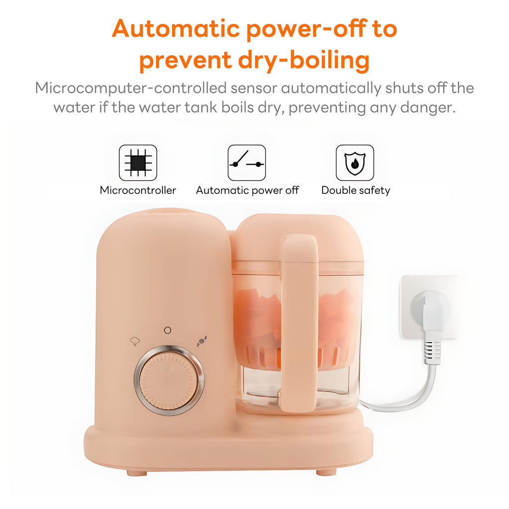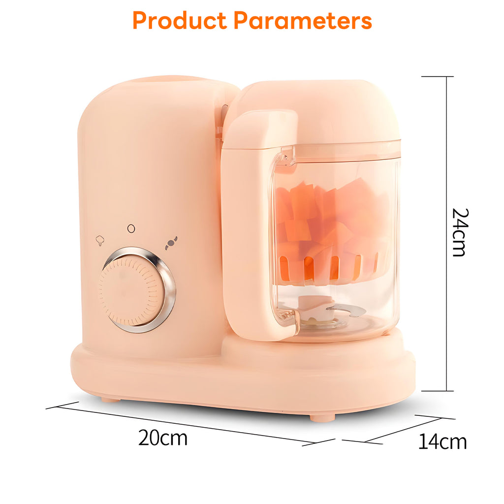 INSMART 4-in-1 Automatic Baby Food Maker and Steamer combines steaming, stirring, defrosting and heating in one machine, 10 minutes to quickly make fruit and vegetable puree/puree, automatic power-off protection, safe and anti-drying, Tritan material is BPA-free, anti-scald handle design. One-button knob operation, wide mouth for easy cleaning, 45° centrifugal head for delicate mixing, 5.15mm scientific spacing without jamming.9.5-inch compact body, double stainless steel blades, 110-240V global voltage, low noise and energy saving, it is the first choice of efficient and safe complementary food making for families.