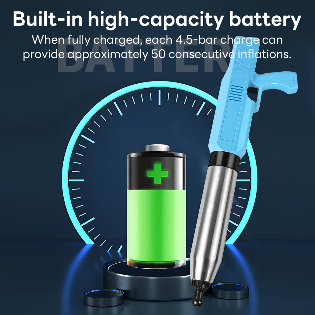 • 【USB Charging & Ultra-Long Battery Life】: Type-C port charging (5V voltage), built-in 1500mAh battery, intelligent charging indicator, red light flashing during charging, green light stays on when fully charged (5-6 hours to fully charge), fully charged can be used continuously for 50 times (each time 4.5BAR), wireless handheld design, no manual pumping required, free from power cord constraints, suitable for use in garages and outdoors.