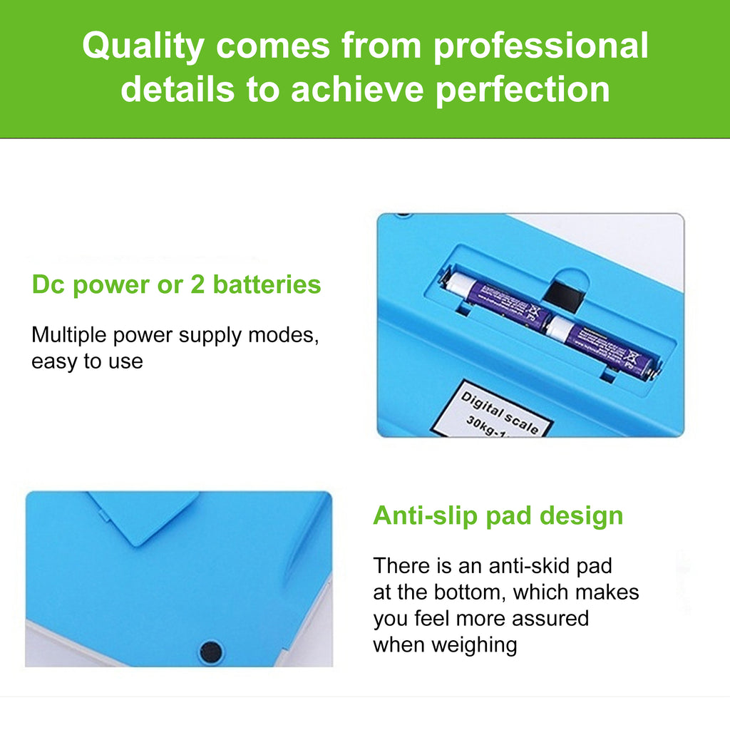 • Dual Power & Durable Build: Supports both battery (2x AAA) and AC power for uninterrupted use. Stainless steel platform + ABS frame ensures durability and easy cleaning.
