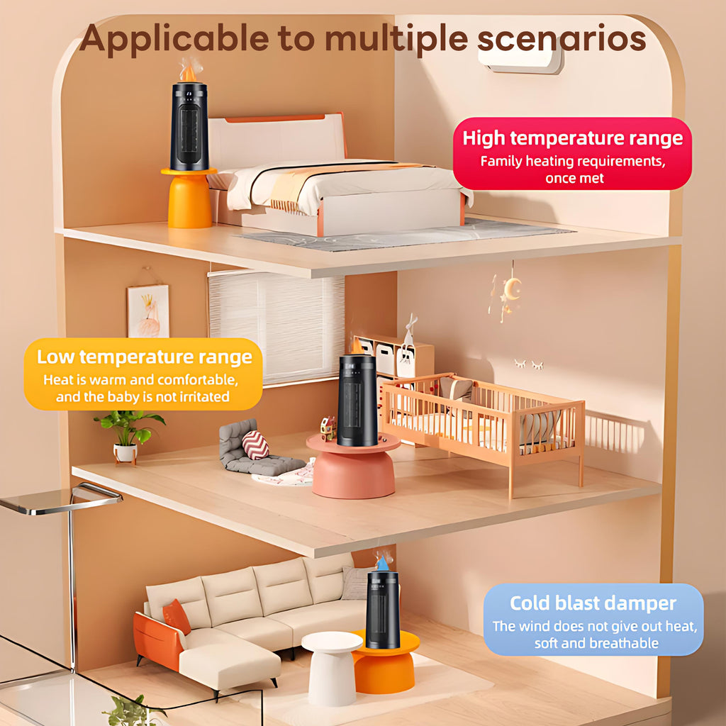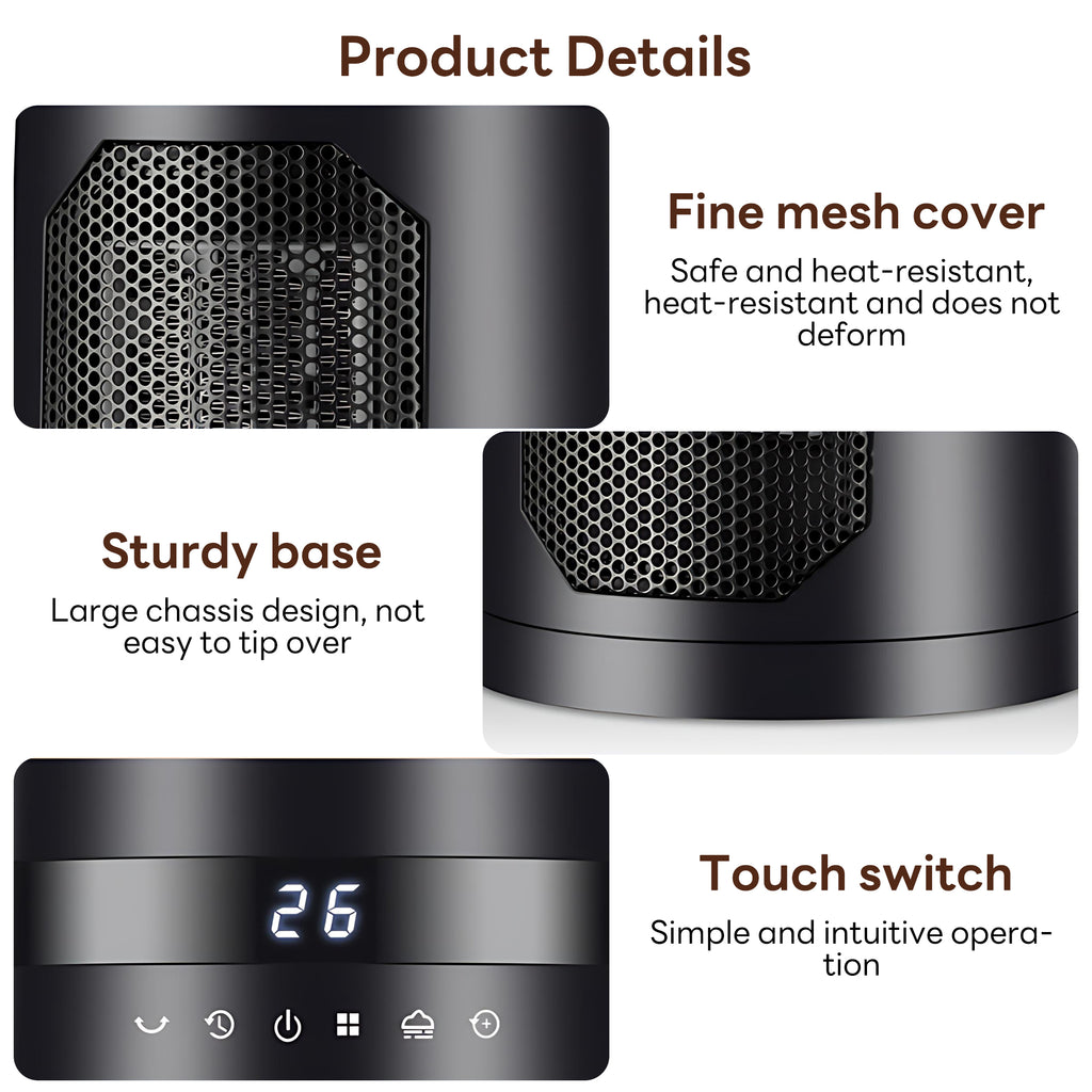 • 【Safety Features for Peace of Mind】: Designed with household safety as a priority. Comprehensive protection includes tip-over protection (automatic power-off at >45° tilt), overheat protection, flame-retardant PP material, and a 10-second cooling delay function. Cool-to-the-touch ventilation grilles ensure safety for children and pets.