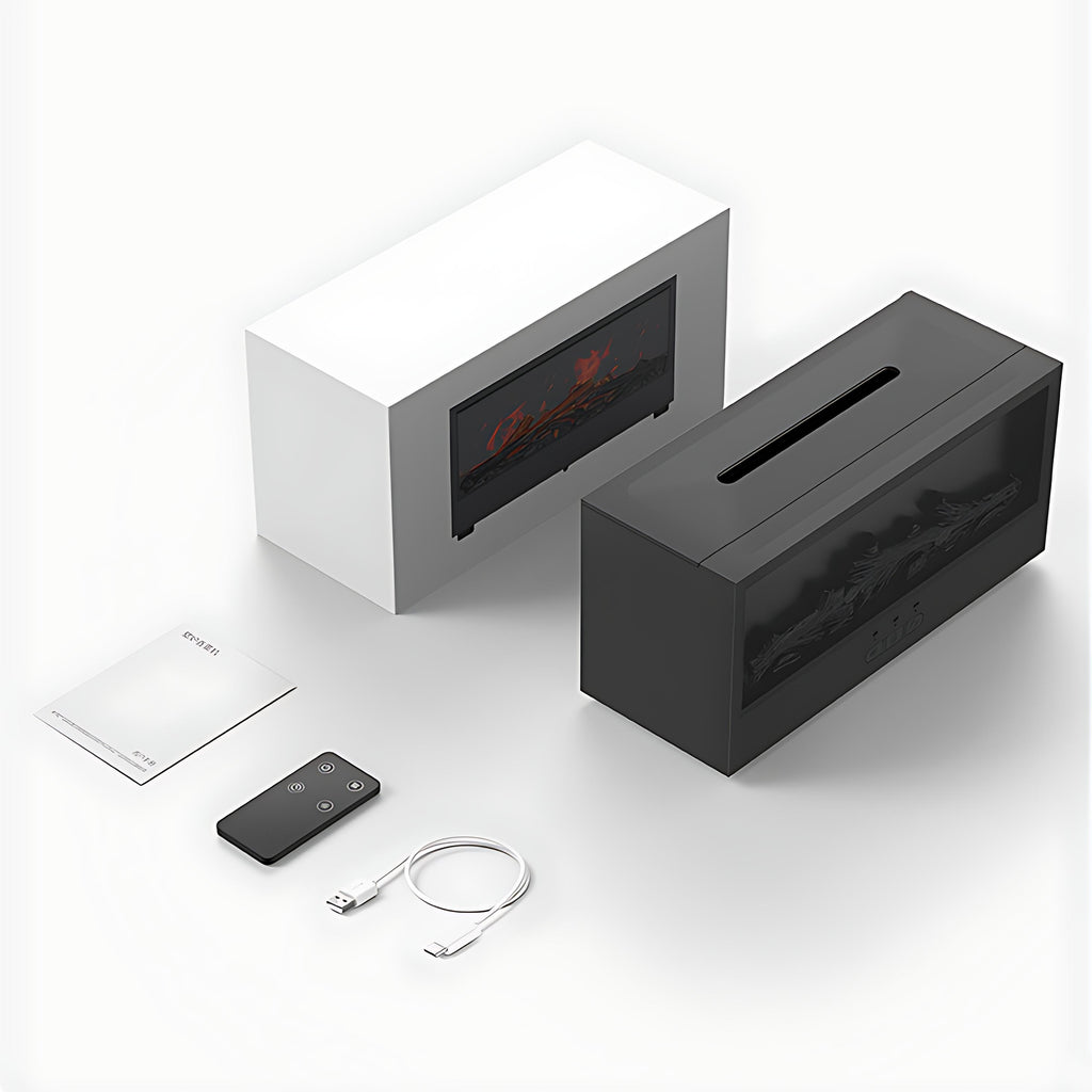 - 【Perfect Gift & Multi-Scene Use 】– Sleek black fireplace design fits any space (home, yoga, spa). Includes Type-C charging & anti-slip base for stability.