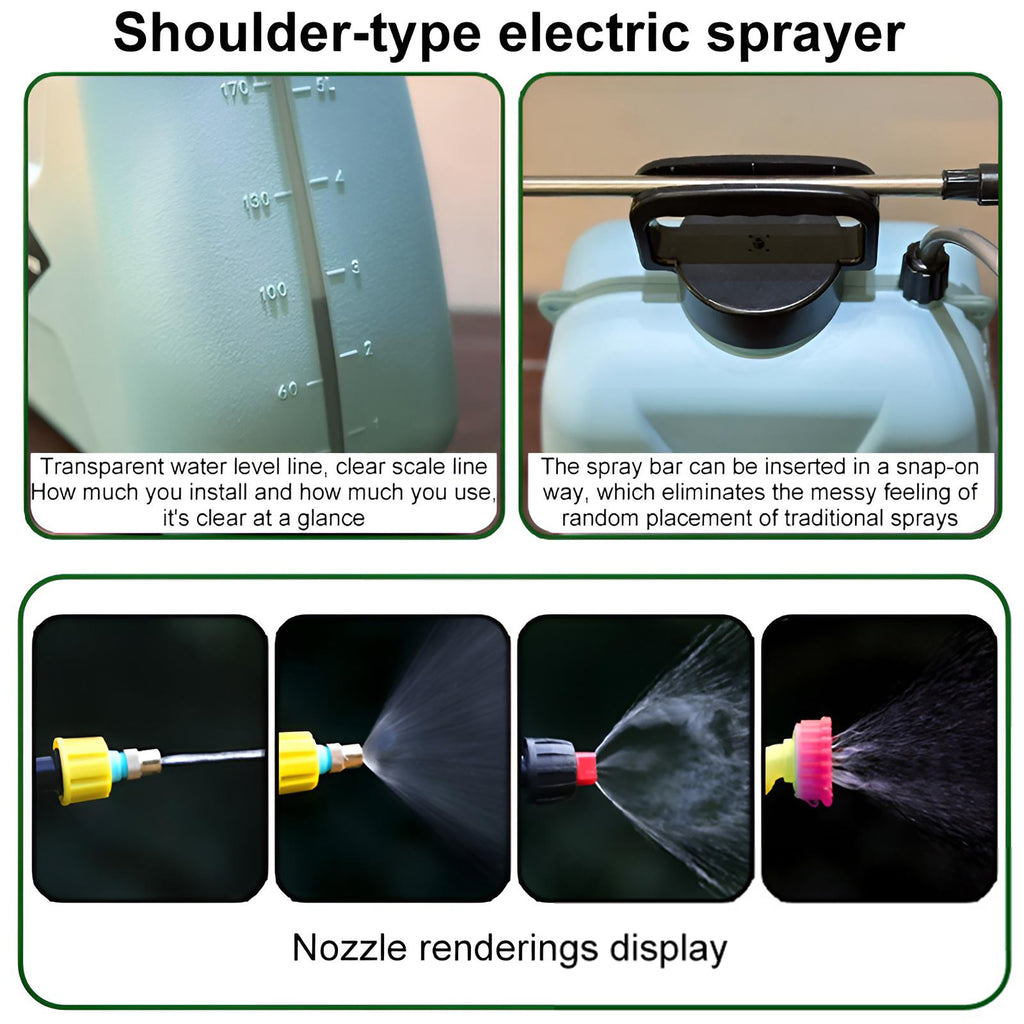 - 【Comfortable & Portable Design】:Ergonomic non-slip handle and adjustable shoulder strap reduce strain during extended use. The 1.35-gallon translucent tank with water level markers ensures easy monitoring and refilling.
