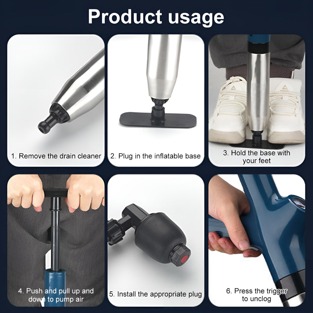 INSMART Air Toilet Plunger,High-Pressure Air Drain Blaster (4.4lbs Force) with 4 Nozzles,Real-Time Pressure Gauge,Unclog Toilets,Sinks,Showers Fast