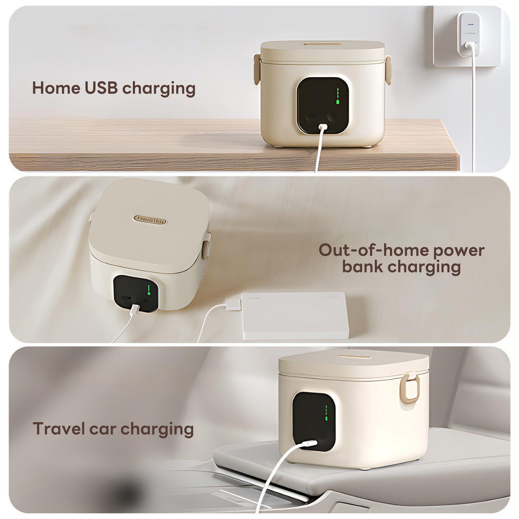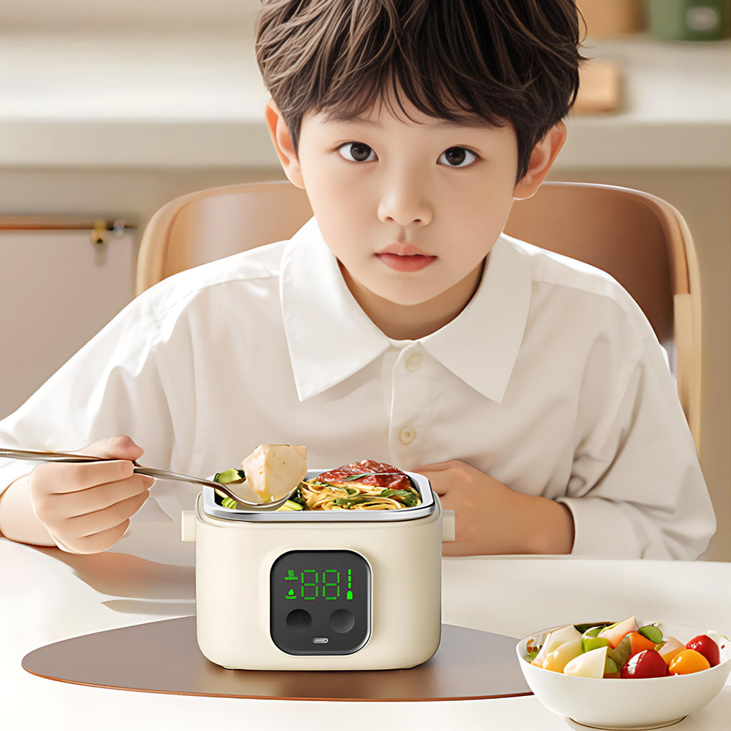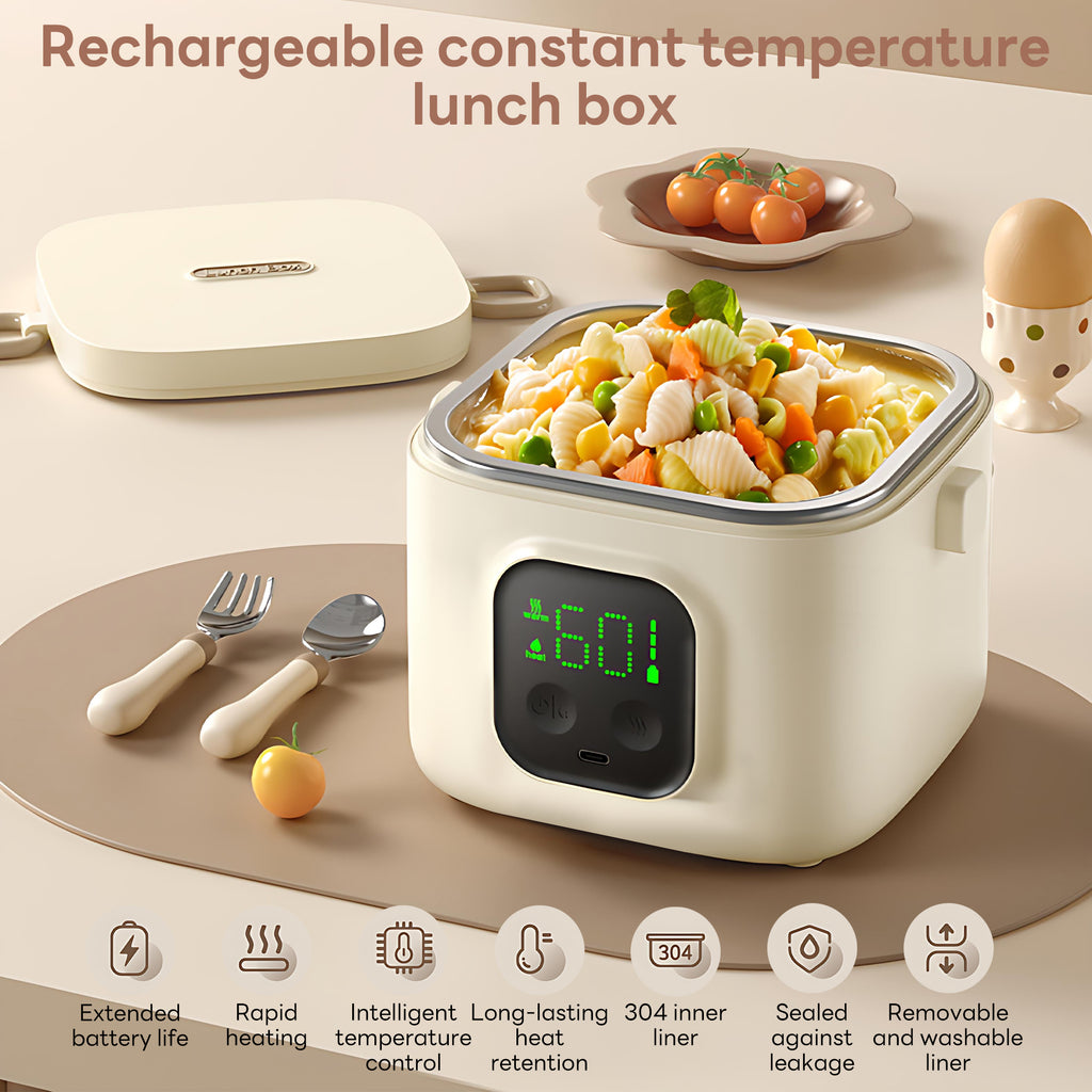 INSMART Wireless Thermostatic Lunch Box is a portable heating container whose core advantages lie in its long-lasting 14000mAh battery, 30W rapid heating technology, and 304 stainless steel inner pot meeting food-grade standards. Its removable design supports high-temperature sterilization for guaranteed hygiene. The sealing system employs a vacuum-sealed lid and silicone gasket for dual-layer leak protection—no spills even when inverted, ensuring effective leak prevention. The inner pot features a detachable structure with water and electricity separation for safer cleaning. Whether nurturing children's meals or serving as a portable hot food solution for adults commuting or traveling, its wireless portability, waterless operation, and versatile power supply meet modern families' diverse hot meal needs. This truly family-friendly product delivers exceptional value.