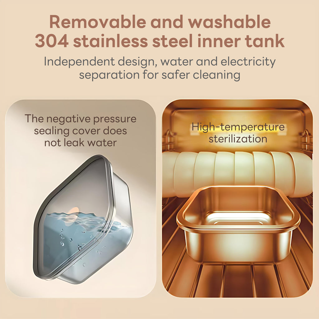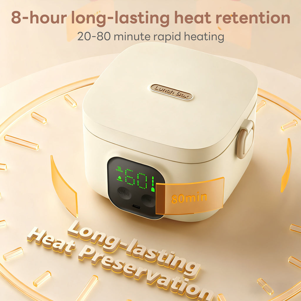 • Features a inner pot for health, safety, and rapid heat transfer. Supports high-temperature sterilization and employs a fully detachable water-electric separation design for hassle-free cleaning. Equipped with a vacuum-sealed lid and silicone gasket for double-layer leak protection—no spills even when inverted, offering far greater safety than ordinary lunch boxes.