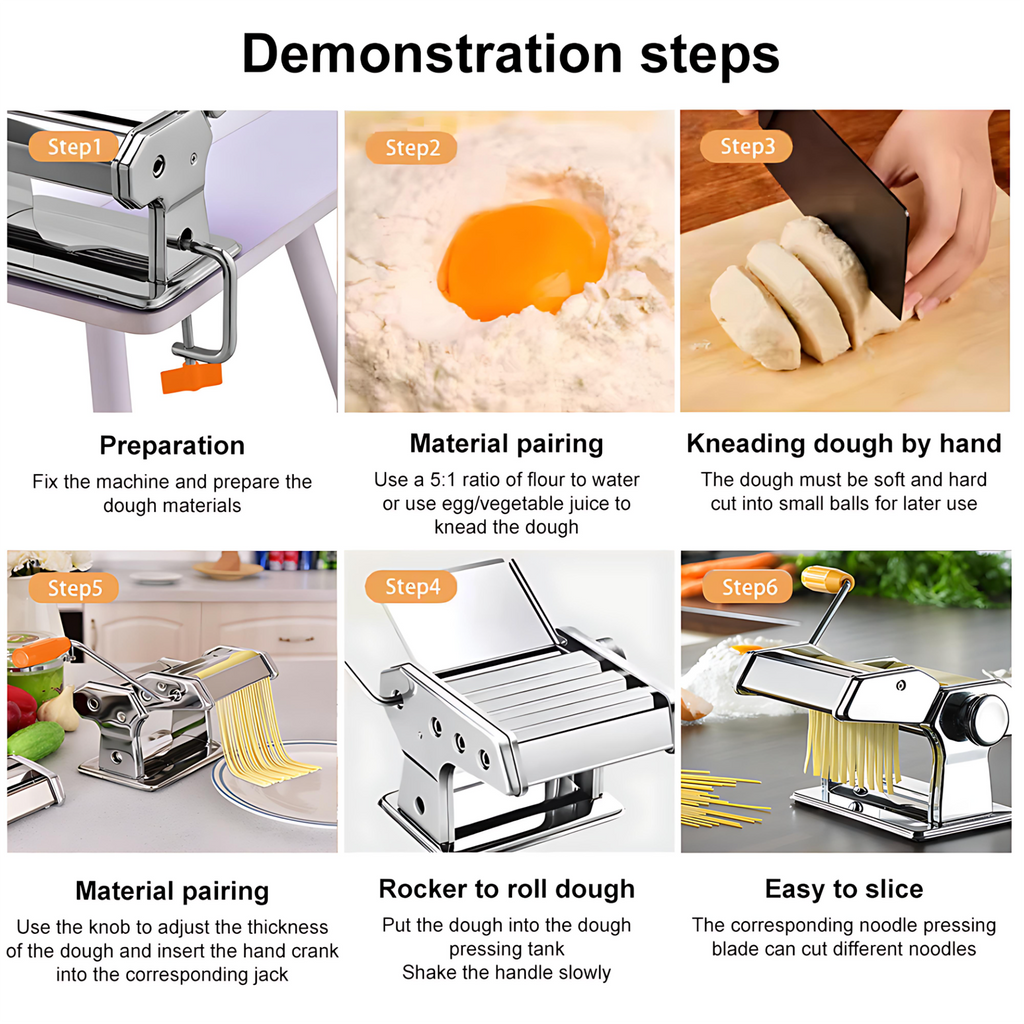 - 9 Adjustable Thickness Settings – Customize pasta thickness from 0.1cm to 0.5cm, (0.04" – 0.2"),ideal for delicate angel hair, chewy spaghetti, or thick dumpling skins.