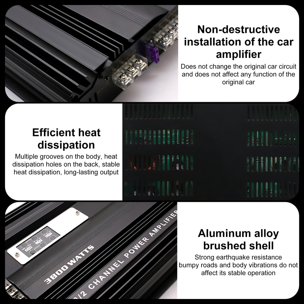 Pecham car audio amplifier is designed to provide powerful power and performance for your car audio system! Its new improved circuit design provides high conductivity, higher temperature stability, and higher insulation resistance, ensuring voltage stability even when you turn up the volume and ensuring that you can listen to music reliably at the highest quality for a long time.