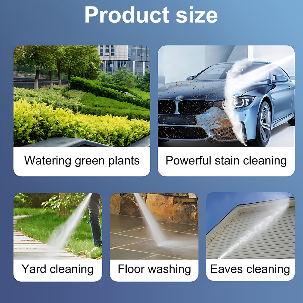 - Powerful Motor: Cordless high pressure washer can reach a maximum pressure of 500PSI, allowing you to clean quickly and efficiently in a short time.