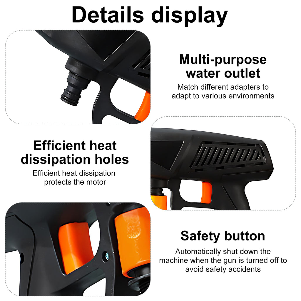 - Cordless Design: Handheld high pressure washer adopts a wireless design and can be freely moved to anywhere you need to clean without connecting to a power socket.