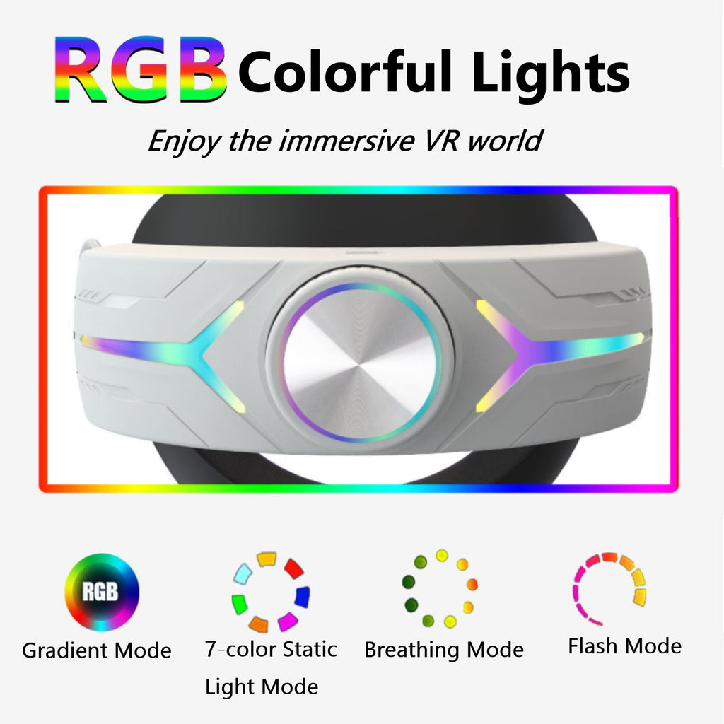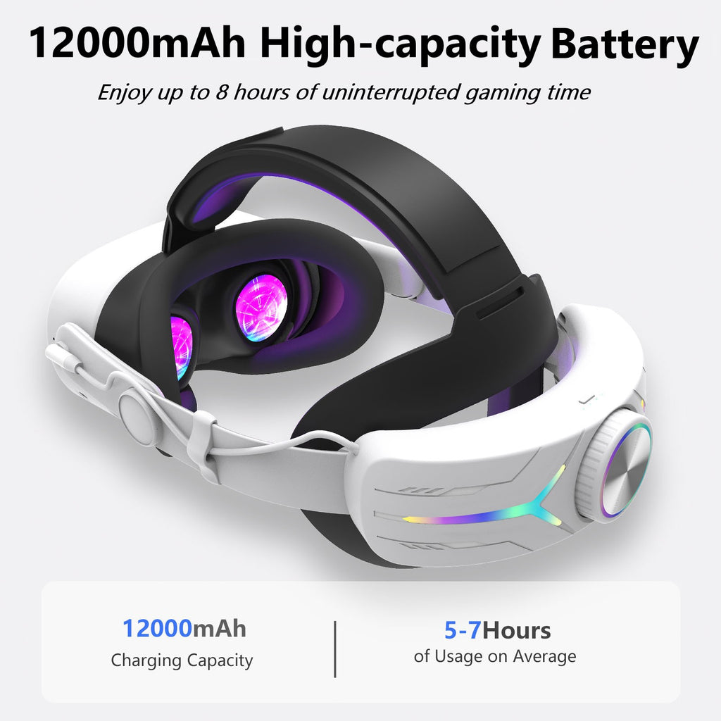 - Pecham RGB Battery Head Strap Fit for Meta/Oculus Quest 3/Quest 3S, 12000mAh Adjustable VR Headset Elite Strap, Fast Charging Elite Strap VR Accessories for Enhanced Comfort and Play Time - White