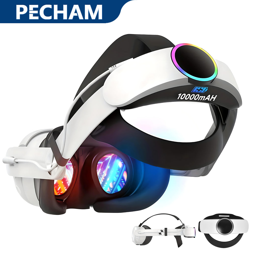 • Pecham Battery Head Strap Fit for Meta Quest 3/3S, 10000mAh Adjustable VR Headset Elite Strap for Enhanced Comfort and Play Time, Charging Elite Strap VR Accessories Fit for Meta/Oculus Quest 3S