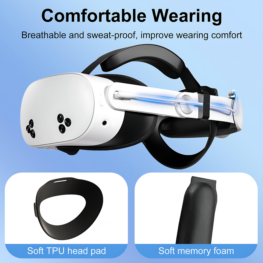 • Extended Gaming Time: VR Headset Elite Strap is equipped with a 10,000mAh high-capacity battery, which can extend the use time up to 8 hours and ensure uninterrupted gaming.