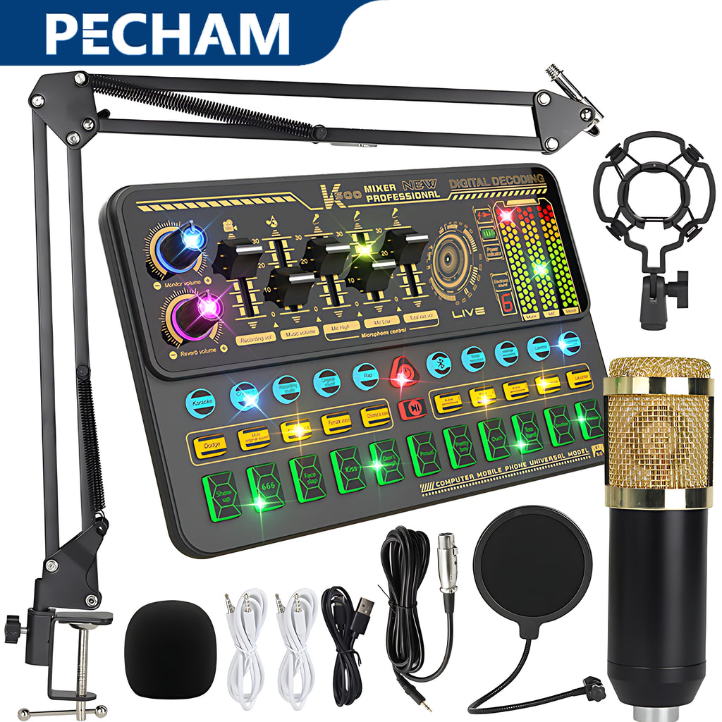 - Pecham Podcast Equipment Bundle, BM-800 Podcast Microphone with Voice Changer, Audio Mixer Condenser Microphone for Laptop Computer Vlog Living Broadcast Live Streaming YouTube TikTok