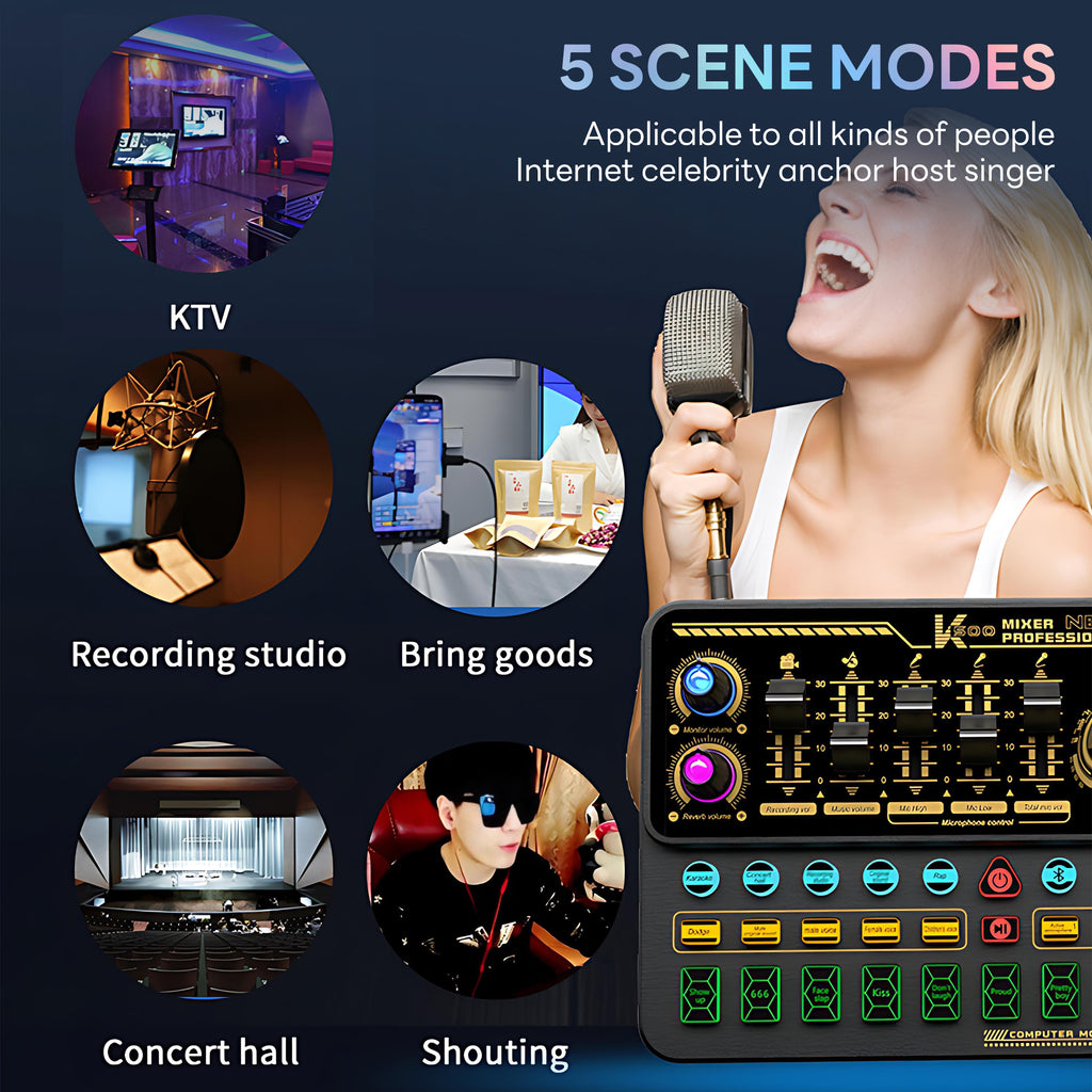 - RGB Colorful Background: Dynamic color vocal display lights, create an immersive atmosphere for your recording and singing.