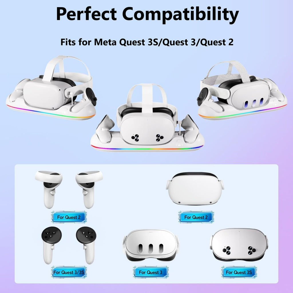- Perfect Compatibility: VR Charging Base is designed for Meta Quest 3S/Quest 3/Quest 2 VR glasses and handles, ensuring a seamless and efficient charging experience.