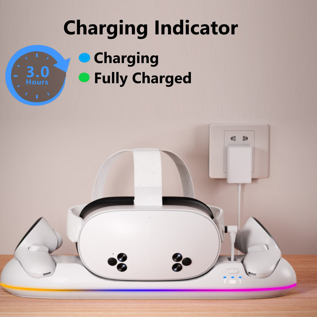 - Fast Charging: Equipped with a 20W USB-C adapter, it only takes 2-3 hours to fully charge your Meta Quest 3/3s/2 headset and controllers.